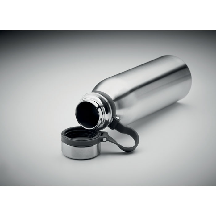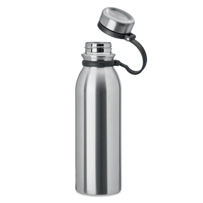 Double walled stainless steel flask with silicone grip making it easy to carry. BPA free. Leak free. Capacity: 600 ml. Leak free.