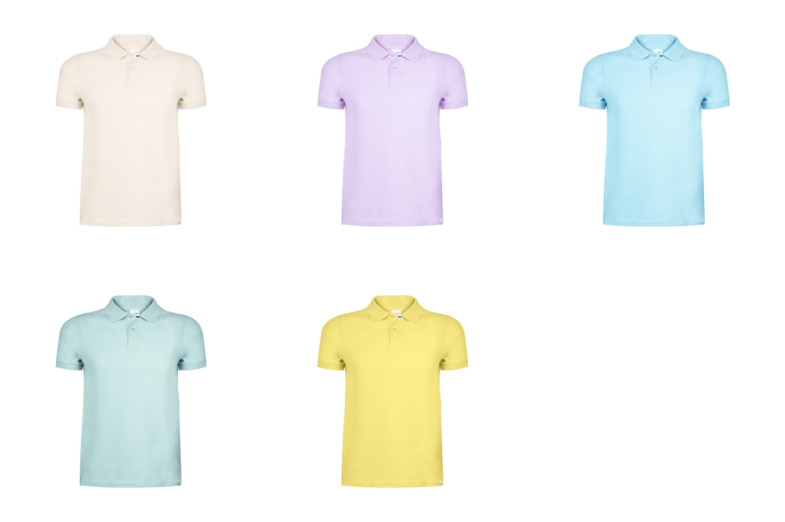 Unisex polo shirt in pastel colours with sweet and soft tones.