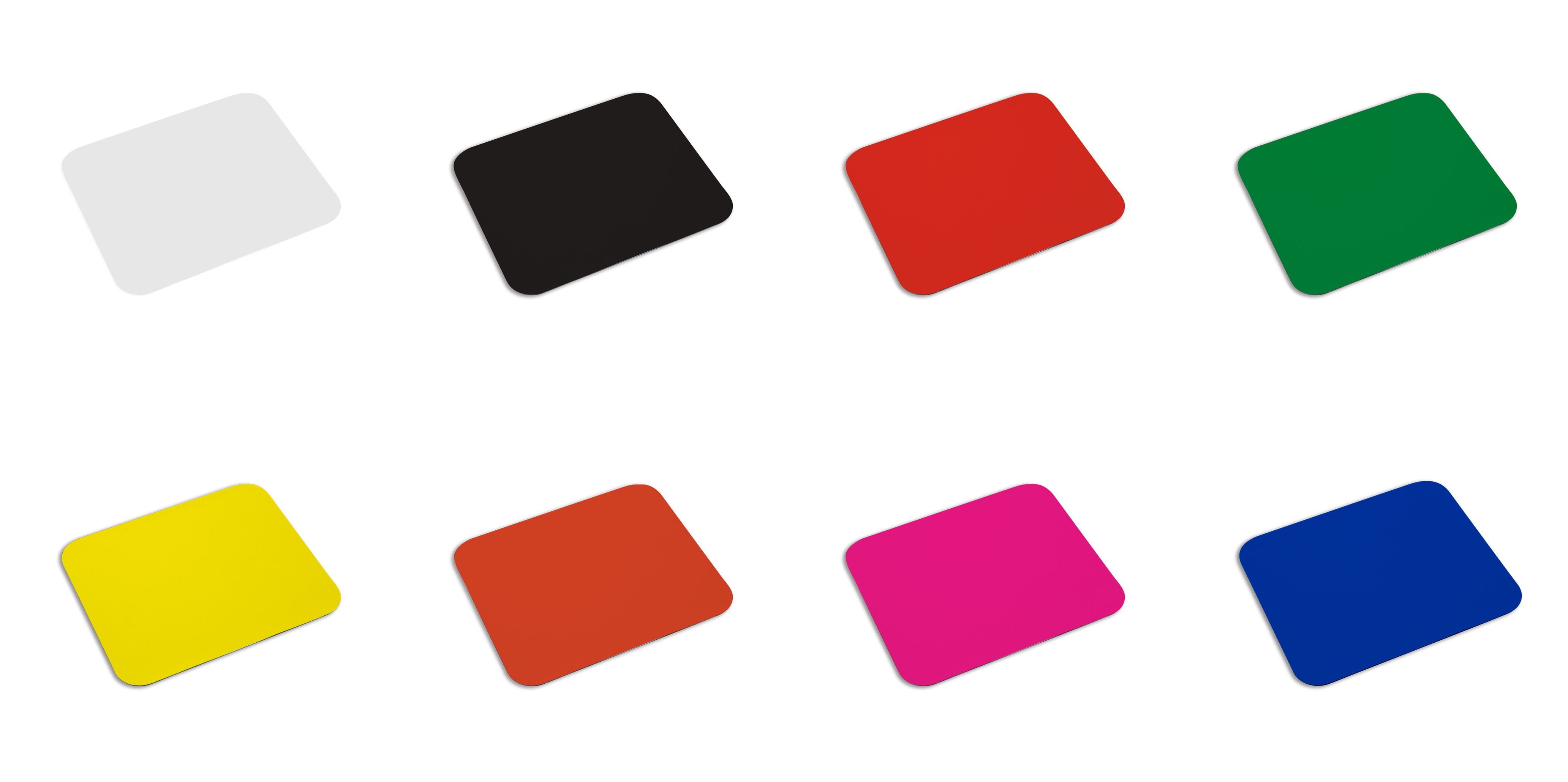 Square design mousepad in soft polyester with bright tones and rubber non-slip base.