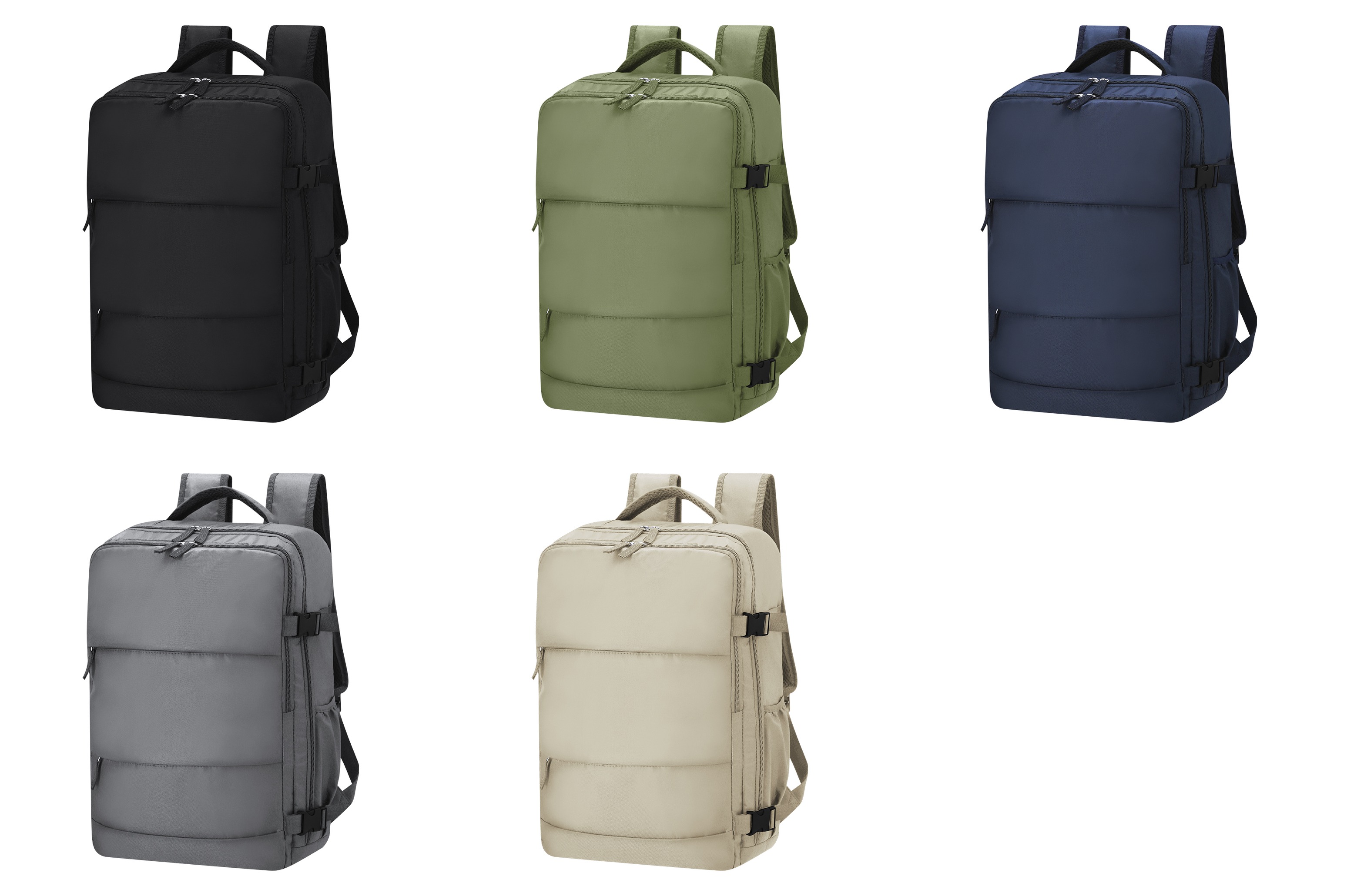 3 large central compartments, one being a pouch, a central pocket with large capacity for storing clothes and/or accessories with an organizer inside, and two more padded pockets, perfect for carrying up to a 15-inch laptop and a 12-inch tablet.Additionally, it features a side pocket perfect for quick access. Ideal for travel or day-to-day use with its adjustable straps, adapting to every lifestyle.