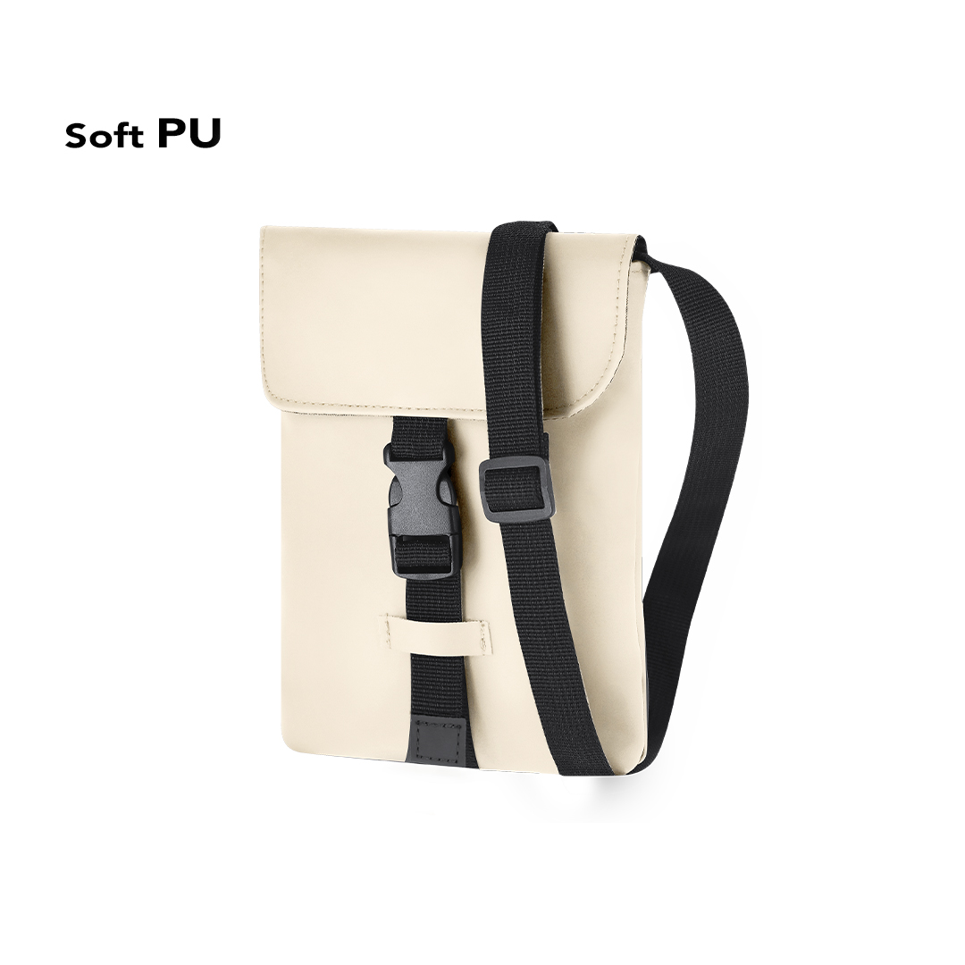Crossbody bag made of soft PU. Elegant design highlighted by its central buckle pocket. Equipped with an adjustable strap for added comfort.